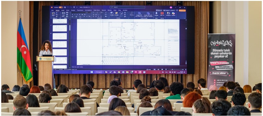 Azərbaycan Memarlıq və İnşaat Universitetində “Changers Academy” tərəfindən təşkil olunan təqdimat çərçivəsində tələbələr memarlıq və tikinti sahəsində müasir trendlər, innovativ yanaşmalar və karyera imkanları ilə tanış olublar. Tədbir “Kristal“ tikinti şirkətinin tərəfdaşlığı ilə həyata keçirilib.