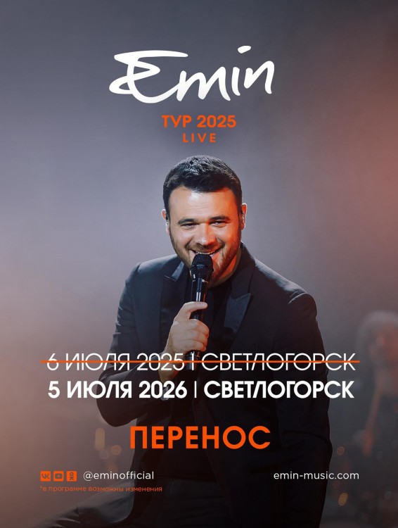 Народный артист Азербайджана Эмин Агаларов перенес запланированный на 6 июля 2025 года концерт в российском городе Светлогорске на год. Об этом он сообщил на своей странице в Instagram.