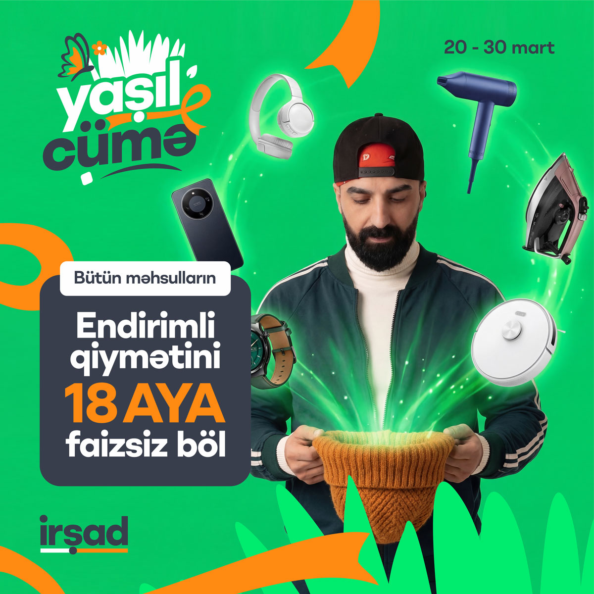 “İrşad” возвращается с акцией «Зелёная пятница», приуроченной к празднику Новруз, которая пройдет с 20 по 30 марта. В рамках кампании на широкий ассортимент товаров в сети магазинов предоставляются скидки до 70%.